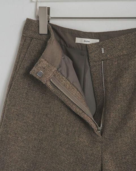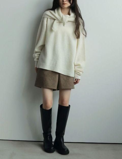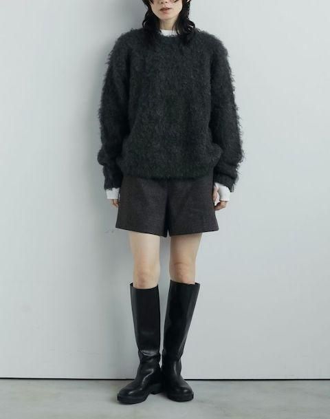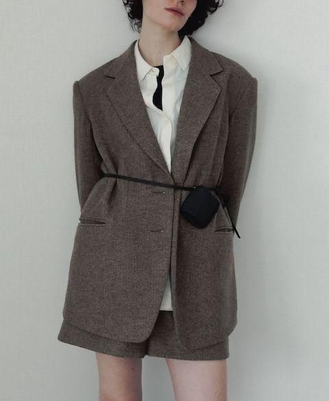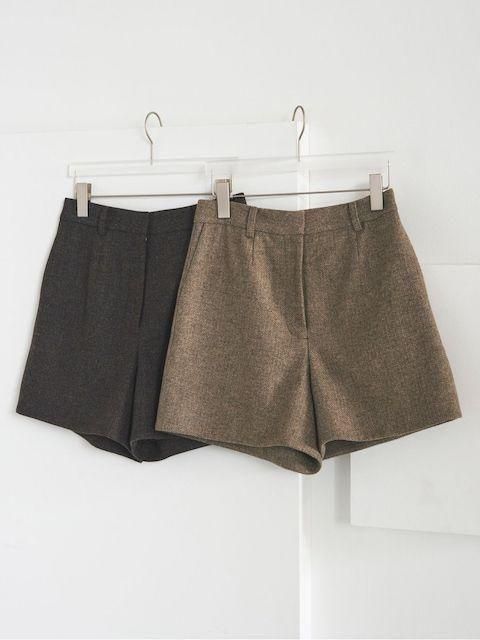 3色の糸をミックスさせた奥行きあるヘリンボーン柄生地を使用したショートパンツ。ウール混で柔らかな表面になるよう起毛をかけた、こだわりのオリジナル素材です。すっきりとした腰回りから、裾にかけ少し広がったシルエットで、太もも周りに程良くゆとりを持たせることで、足が華奢見えするよう仕上げました。同素材のHerringbone Wool Jacketとセットアップスタイルも、ぜひ楽しんでいただきたい一本。