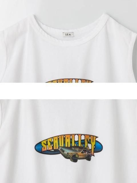 80年代の雰囲気溢れるデロリアンをモチーフにしたグラフィックを施したタンク。