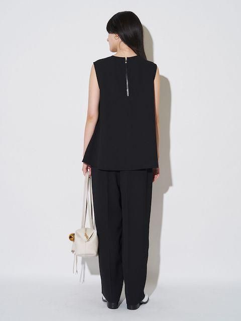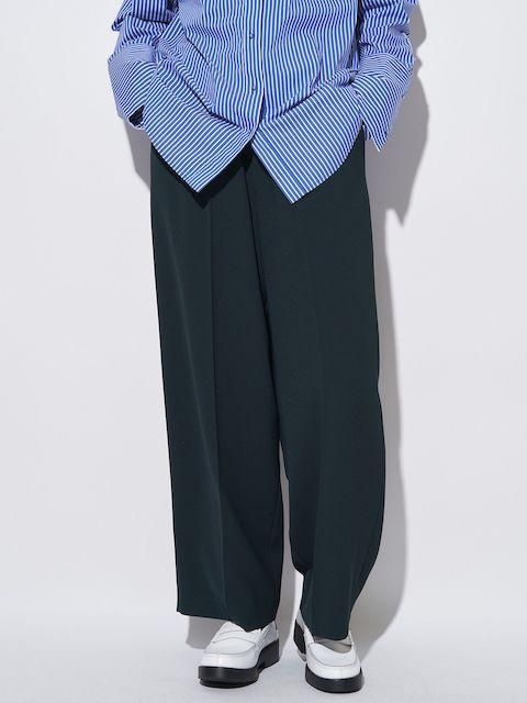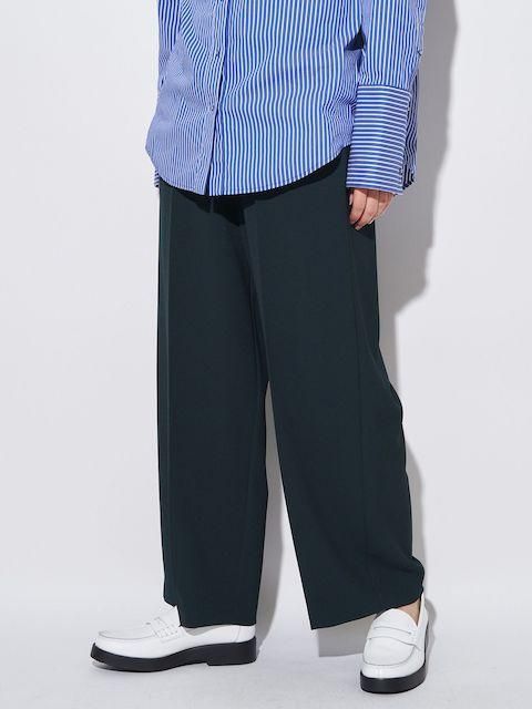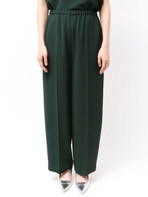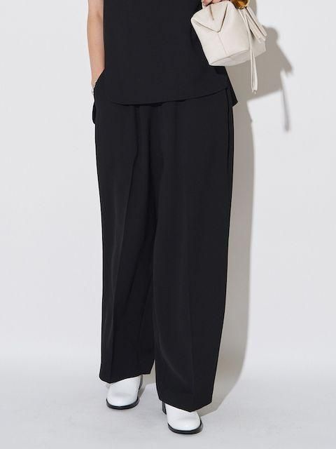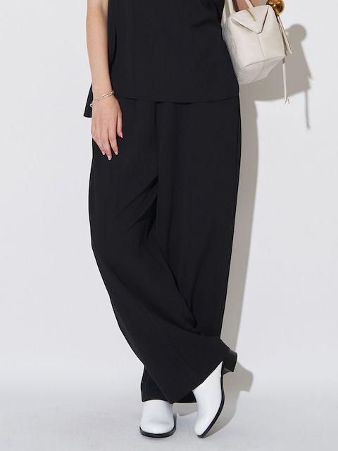 落ち感ある綺麗なジョーゼット素材を使用しセンタープレスをする事でウエストオールゴムでもラフ過ぎず上品な印象に。