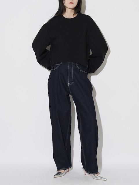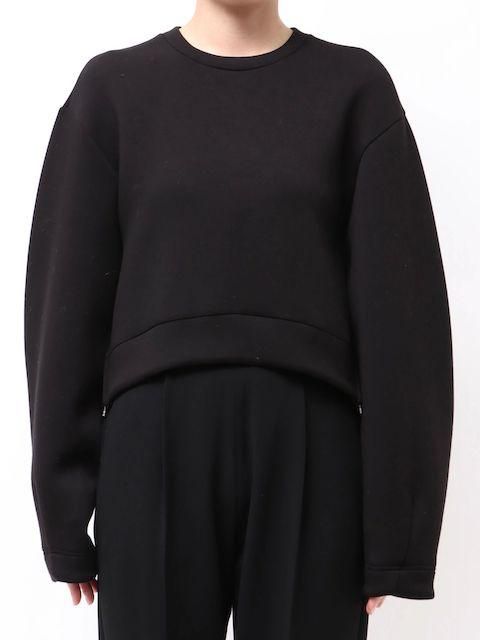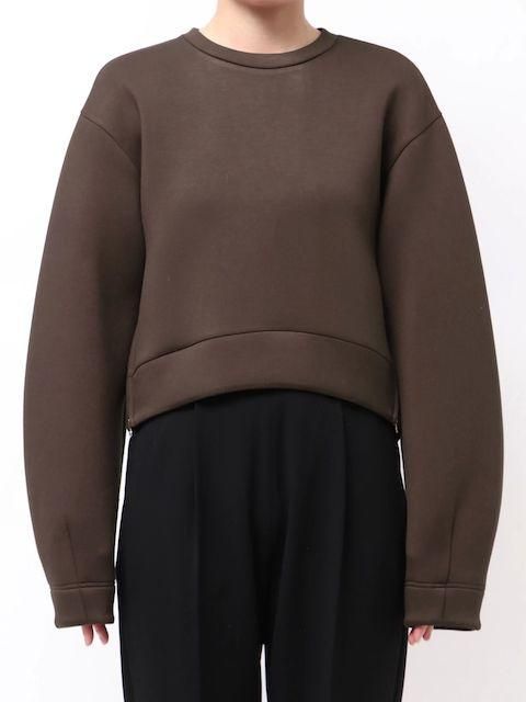 クリーンな表面感のダンボールニット素材を使用しきれいめな印象のスウェット。