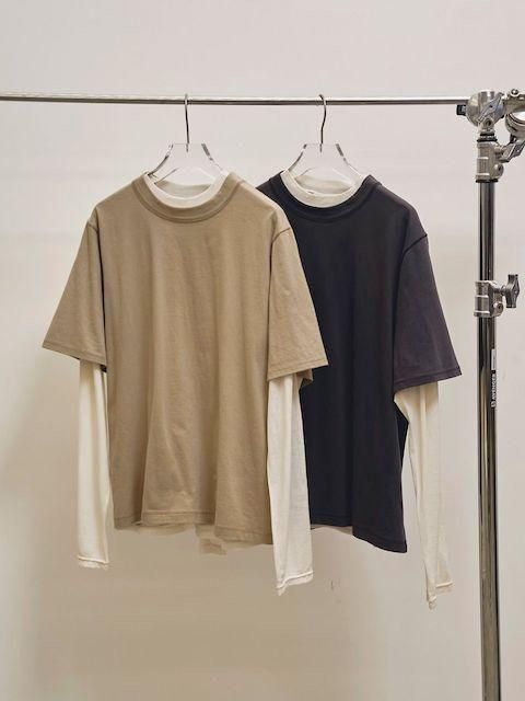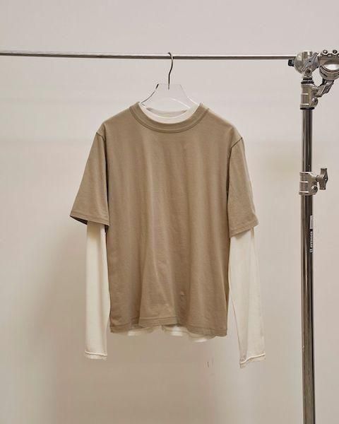 透け感のあるシアーカットソーと、肌あたりの良いカットソーを組み合わせたレイヤードTee。ステッチワークにこだわり、リラックス感のあるゆったりとしたシルエットが魅力。それぞれ単品でも着用可能で、スタイリングの幅が広がるアイテムです。デニムなどのカジュアルなボトムスと合わせるのはもちろん、きれいめなスラックスとも好相性な一枚です。