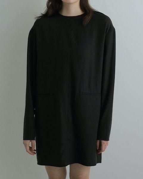 ミニマルなデザインで上品に仕上げたミニ丈ワンピース。落ち感のあるマットな質感が特長的な一枚。あえてマニッシュなオーバージャケットやレザージャケットなど、メンズライクなアイテムと合わせるのもおすすめ。ロングブーツやタイツを合わせて、秋冬らしい足元を楽しんでいただきたい一着です。