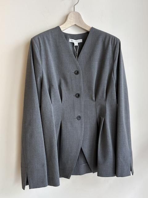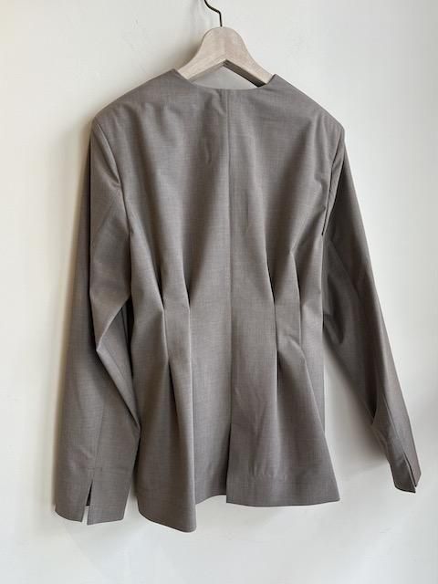 構築的なタックディテールとすっきりとしたVネックラインが印象的な一枚。程よい張り感、落ち感と2wayストレッチの快適さを兼ね備えた素材により、立体感のあるフォルムを美しくキープしながらも、軽やかな着心地を実現しています。