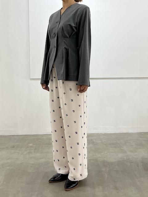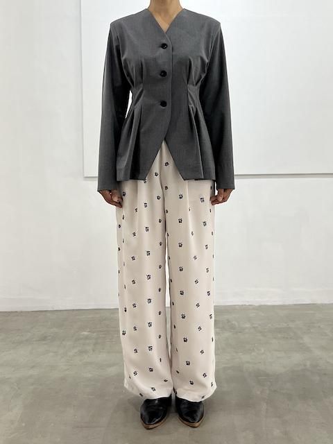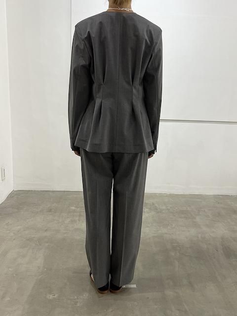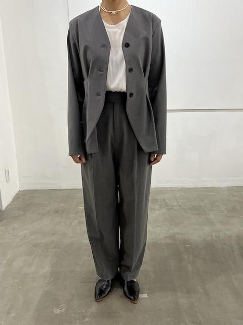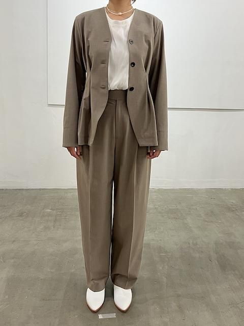 ウエストに入れた深めのタックがさりげなくシルエットを引き締め、身体に自然に沿う端正なラインを描きます。