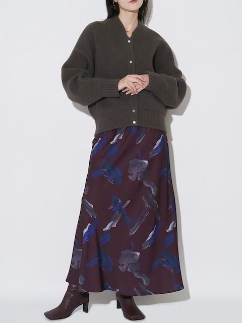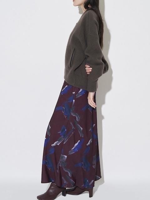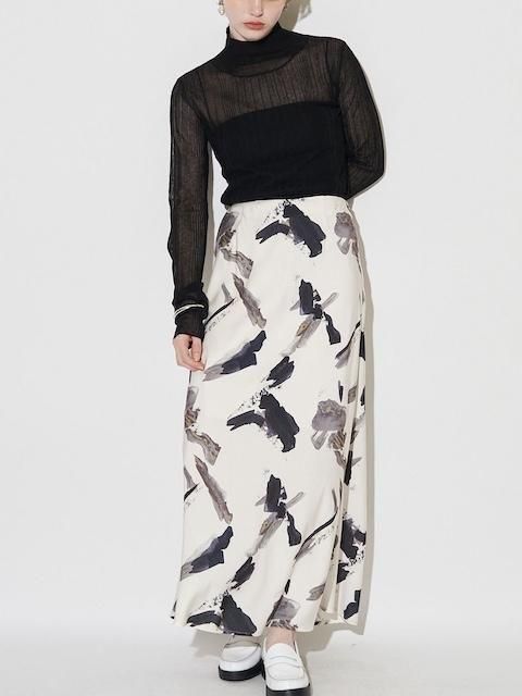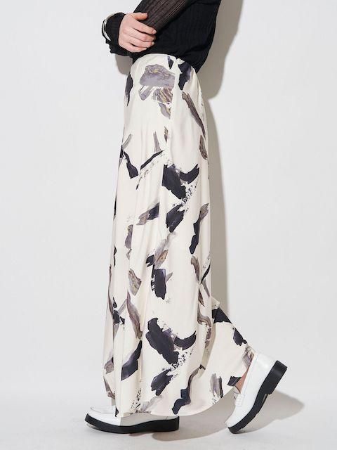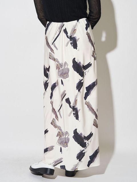 とろみのある素材が生む滑らかな落ち感と裾に向かってなだらかに広がるシルエットが上品な印象を演出。