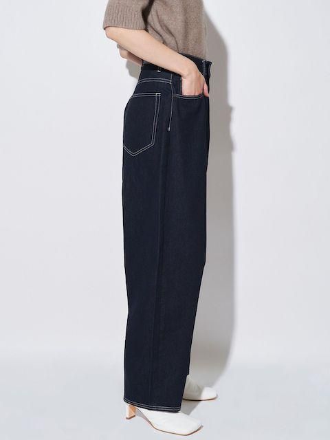 カジュアルになり過ぎず、綺麗見えするワンウォッシュデニムパンツ。