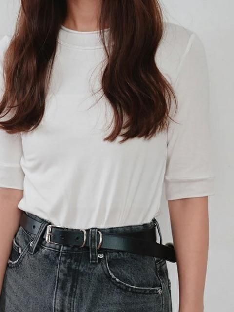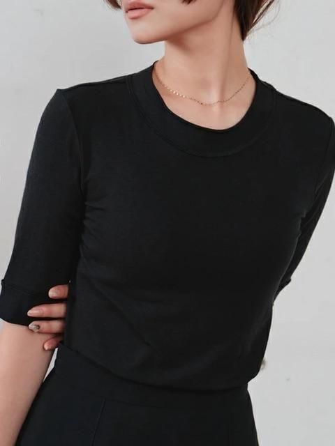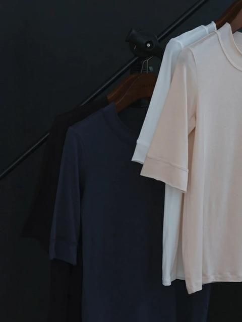 コンパクトなシルエットで仕上げた、五分袖のベーシックカットソー。