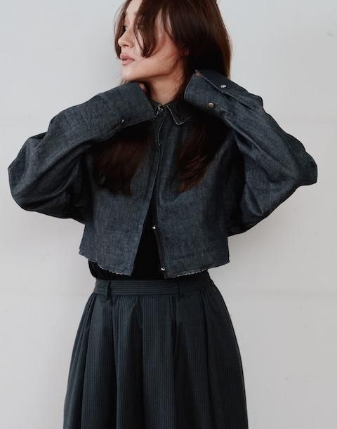 コンパクトな丈感が目を引く、スノーデニムのショートジャケット。
