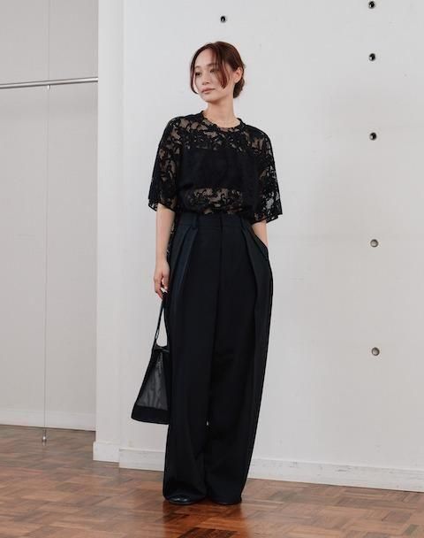 袖口は直線的に仕上げ、ネック部分はコンパクトにまとめることで、甘さを抑えました。