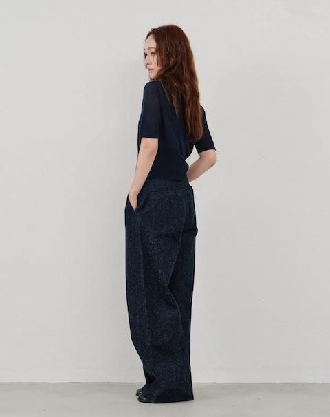 ミニマルなトップスと合わせると、より一層洗練された印象に。