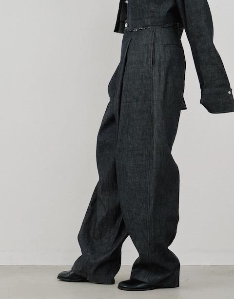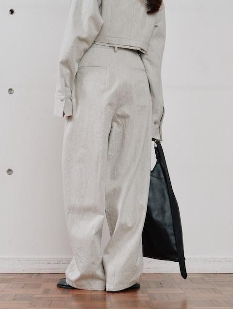 フロントのタックが腰回りにゆとりを持たせ、リラックス感のある佇まいに。