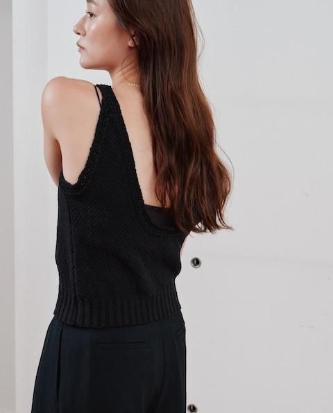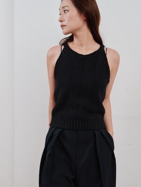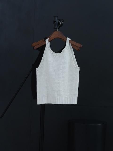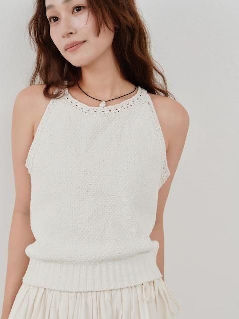 繊細な編み模様が印象的なサマーニットタンクトップ。