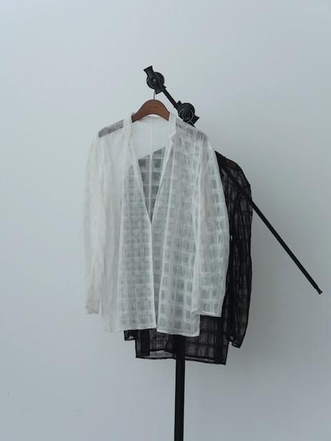 オリジナルチェックのインド刺繍が印象的な、シアー素材のレイヤードシャツ。