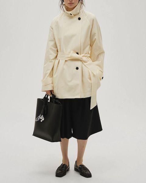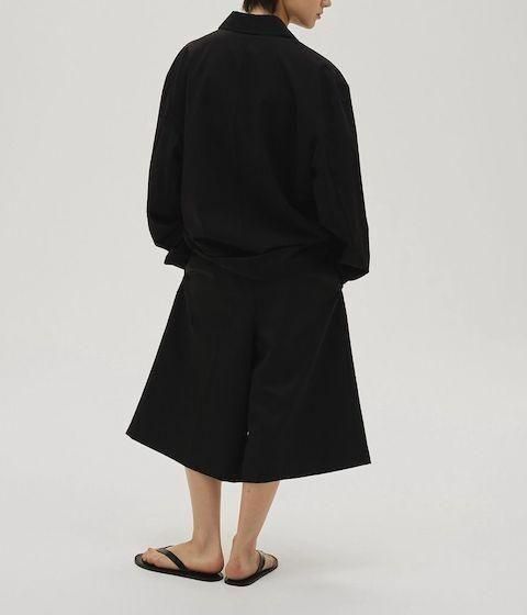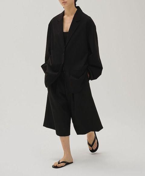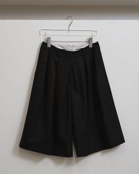 上質なツイル生地を贅沢に使用したバミューダパンツ。フロントタックが程良い立体感を生み、ワイドなシルエットながらもすっきりとした印象に。膝が隠れる着丈は、ラフに着こなしても大人っぽさをキープしてくれます。カジュアルなカットソー合わせはもちろん、女性らしいキャミソール等ともバランス良くまとまる一本。足元はスニーカーやローファーを合わせて抜け感をプラスするのがおすすめです。