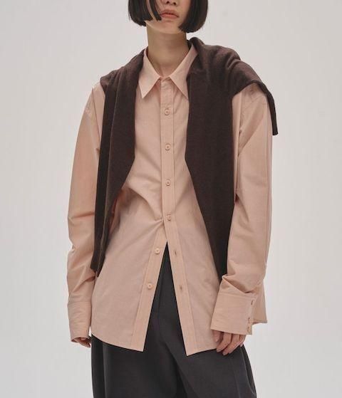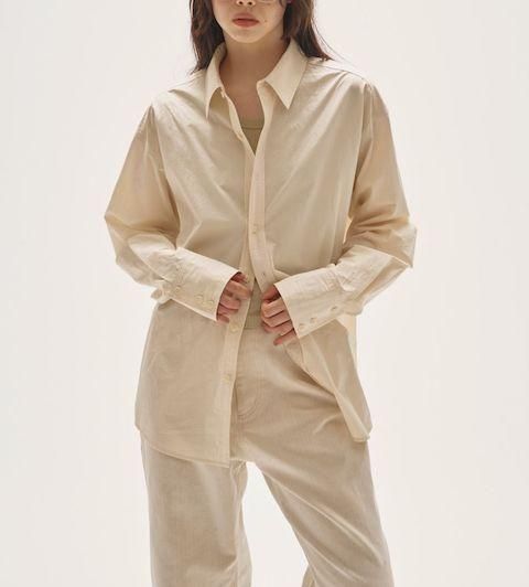 国内の上質なタイプライター生地を使用したシャツ。80番手の超長綿を高密度に織り上げることで、しなやかさとハリ感を両立させた上品な風合いに。洗い加工による自然なシワ感とパッカリングが、程良い抜け感を演出します。全体的にミニマルなデザインは、様々なスタイリングにすっと馴染む一枚。程よくゆとりのあるシルエットで、レイヤードにも単品使いにも活躍する汎用性の高いアイテムです。