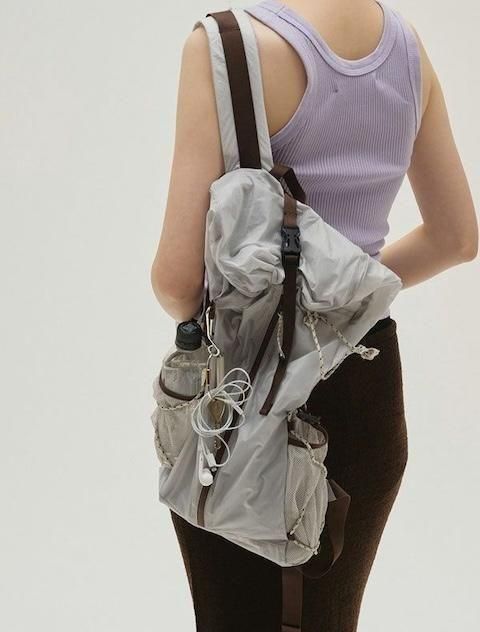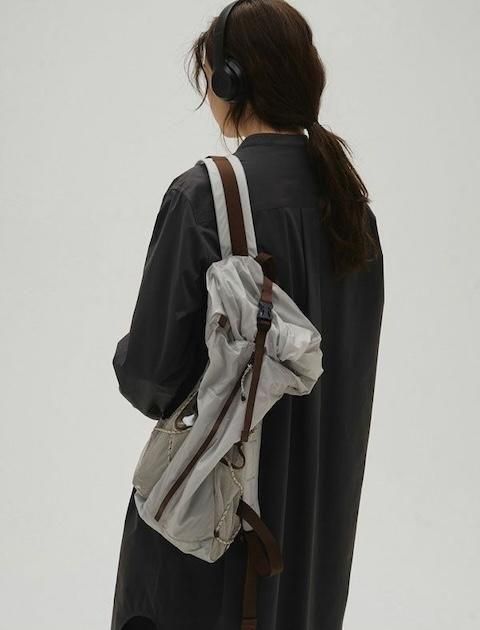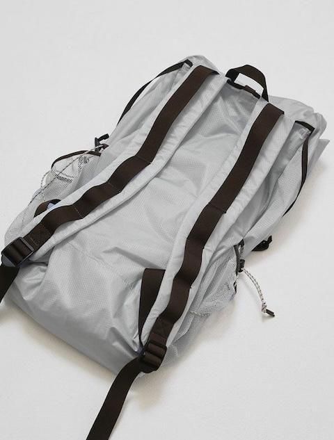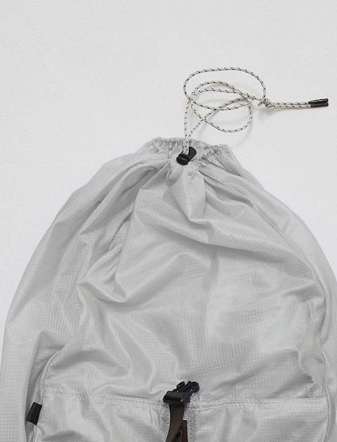 シアー感のあるリップストップ生地を使用したバックパック。軽やかな素材感に撥水加工を施し、デイリーに活躍します。内側のポケットに折りたたんで収納できるコンパクト仕様。