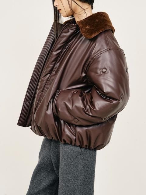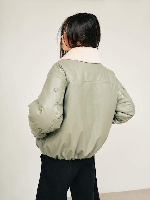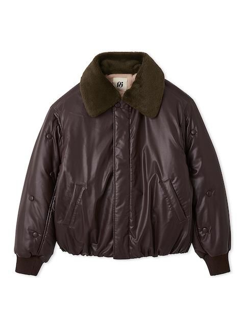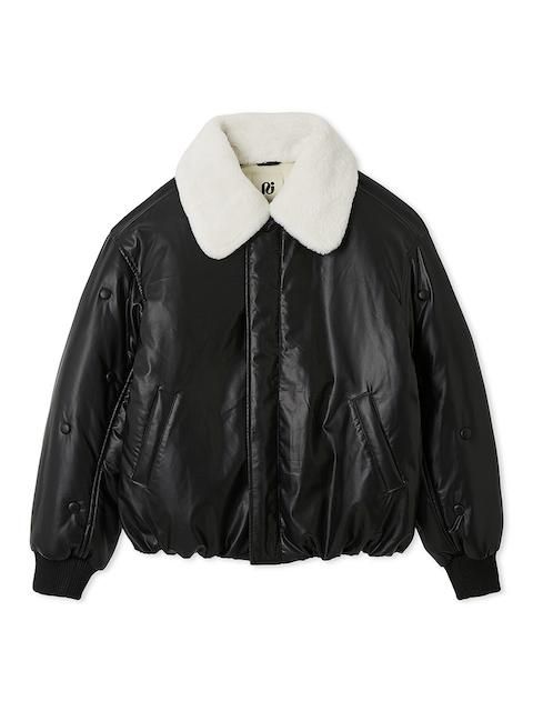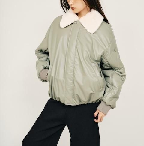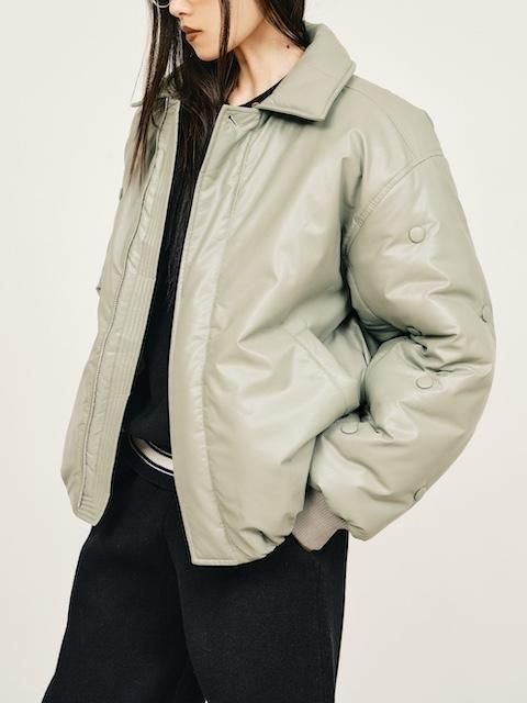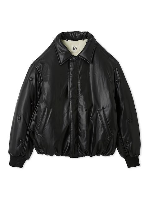 袖部分をボタンデザインあしらったフェイクレザーMA1ジャケット。