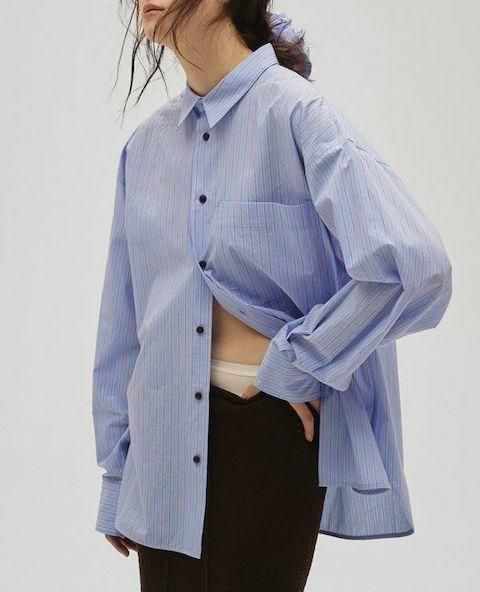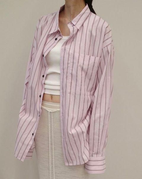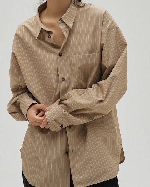 コットン100%の軽やかな生地を使用したシャツ。カラーごとに異なるストライプピッチが魅力で、胸元のポケットや配色ボタンがさりげないアクセントに。リラックス感のあるオーバーシルエットで羽織るだけでこなれた印象に仕上がります。