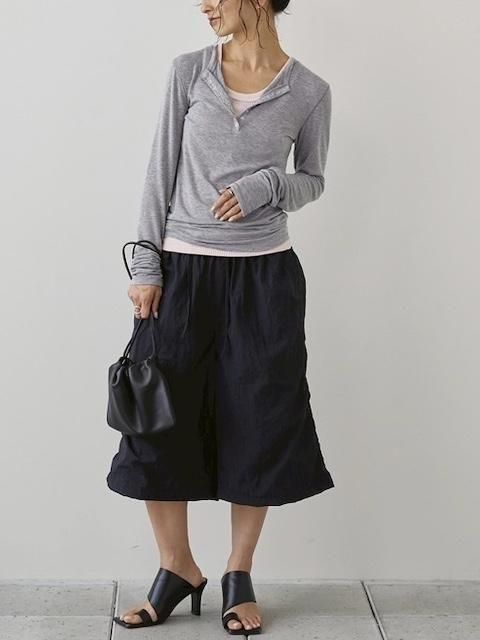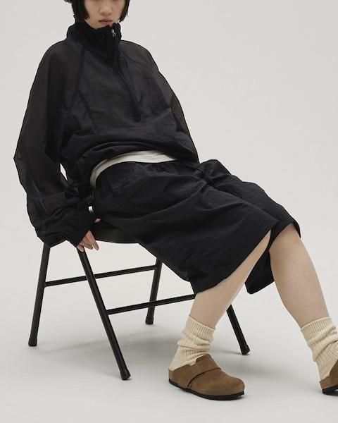 膝の隠れる程良い丈感で、コンパクトなサイズ感のシンプルなカットソーやニットと好相性。同じ生地を使用したNylon Ripstop Blousonとセットアップで着こなすのもおすすめです。全色裏地付きです。
