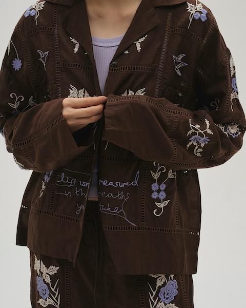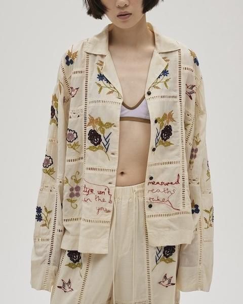 一枚一枚に刺繍をあしらい、柄の配色や袖口のディテール等細部にまでこだわりの詰まった