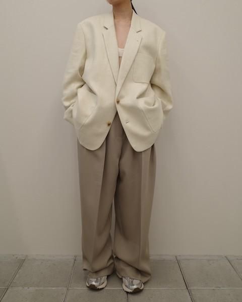 上質なリネン100%生地を使用し、オリジナルカラーに染めたジャケット。自然な張りや艶感、奥行きのある色味が表情豊かに映える一枚です。TODAYFULらしいオーバーサイズのシルエットで仕上げ、マニッシュなムードを漂わせながらもラフに羽織れるデザイン。