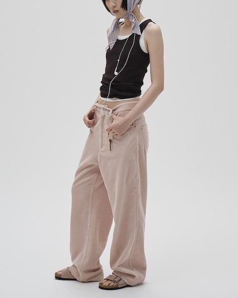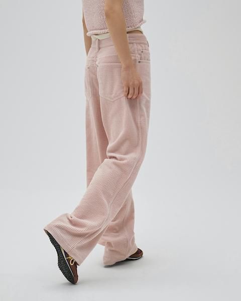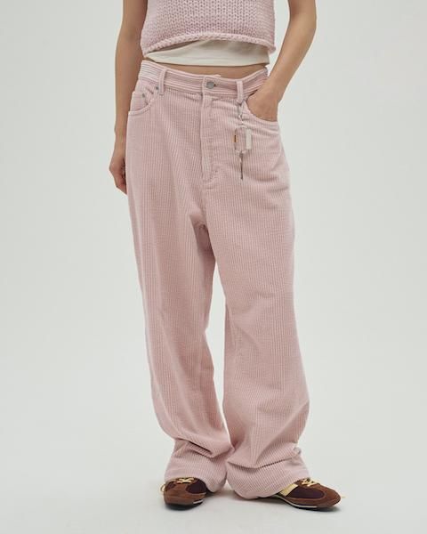 国内生地を使用した、太めの縦ラインが特徴のコーデュロイパンツ。柔らかく落ち感のある生地で、腰まわりをすっきりと見せつつ、ほどよくゆとりのあるシルエットが脚をきれいに演出してくれます。
