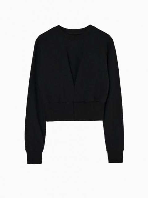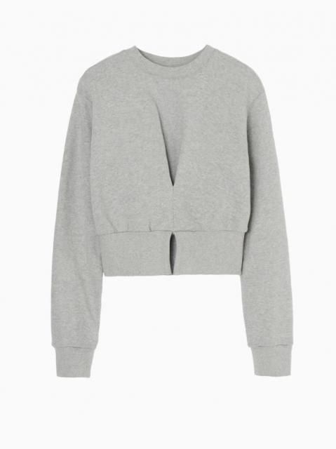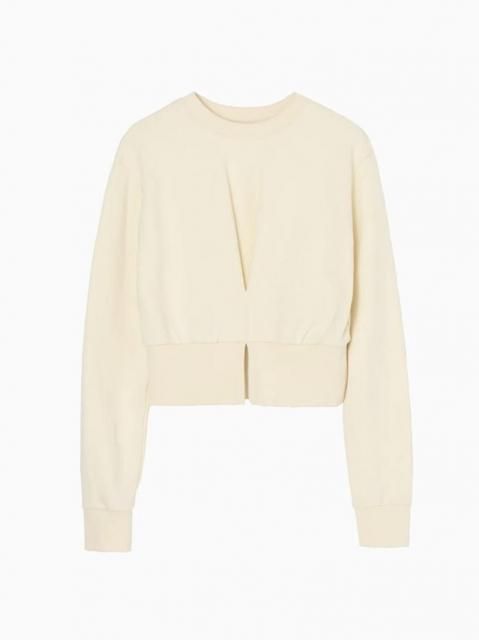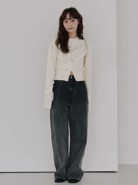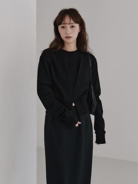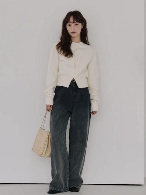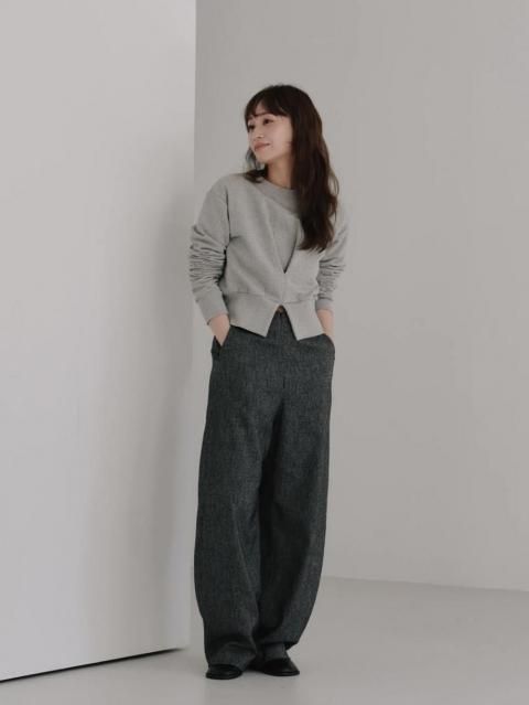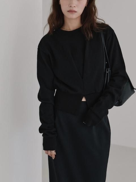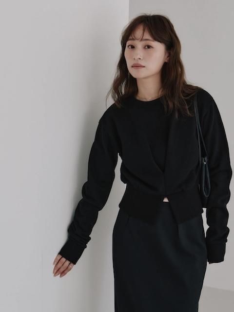 フロントのタックデザインが魅力なクロップド丈のスウェット。