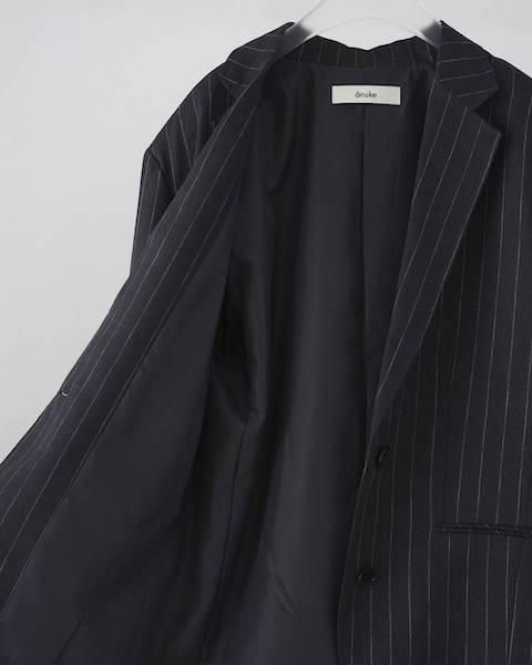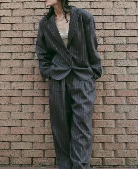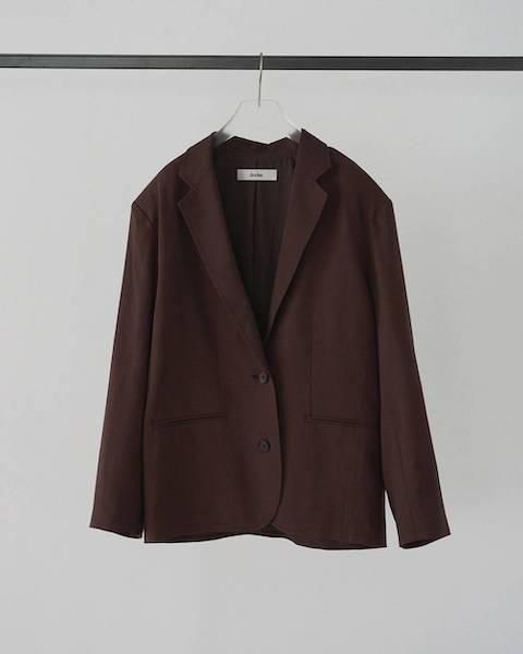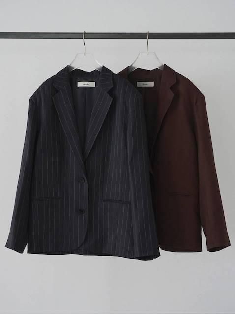 リネン素材を使用したオーバージャケット。オリジナルで織り上げた薄手のリネン素材で、春から夏の始まりの羽織として活躍する一着。無地のブラウンとストライプ柄のネイビーの2色展開。リネンならではのナチュラルなシワ感が、程良いラフさを演出し、ゆったりとしたサイジングが抜け感あるマニッシュな印象を添えてくれます。同素材のLinen Half PantsやLinen Tuck Pantsとセットアップで着ていただくのもおすすめ。シンプルなトップスに合わせるだけで、シックな装いに。