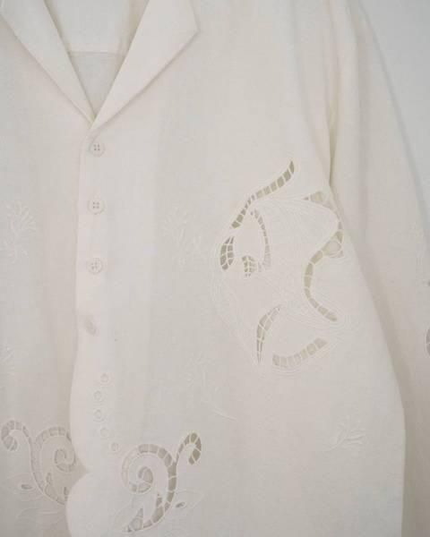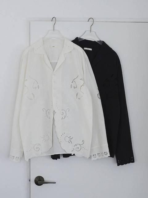 カットワーク刺繍が目を惹くインド製の開襟シャツ。袖と前身に大きく刺繍柄を入れ、これだけでコーディネートに華を添えます。スカラップ刺繍で仕上げた襟と裾もポイント。インド製ならではの繊細なディテールが、袖を通すだけで気分を高めてくれる一枚。オーバーなサイズでラフに仕上げ、こなれた抜け感を演出。シンプルなボトムとのコーディネートはもちろん、バイカーパンツを合わせたモードな着こなしや、春夏の羽織りとしてもおすすめの一着。