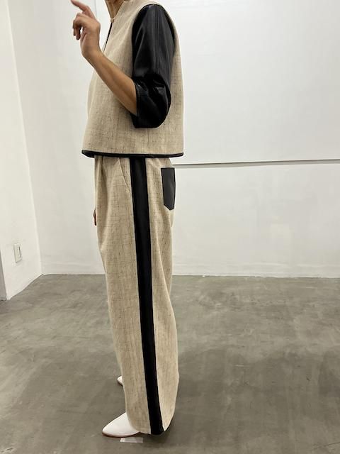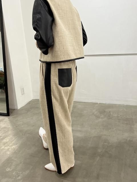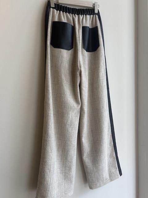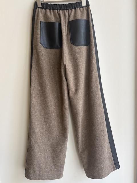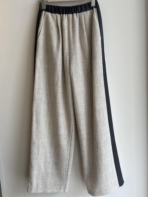 直線的なシルエットに、両サイドへ合皮ラインを走らせた、大人のためのコンフォートパンツ。