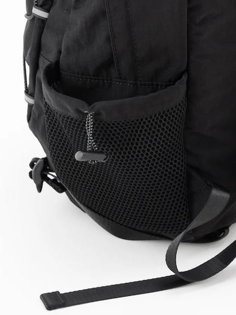サイドにはメッシュポケットを配置し、ペットボトルや小物の収納にも便利。