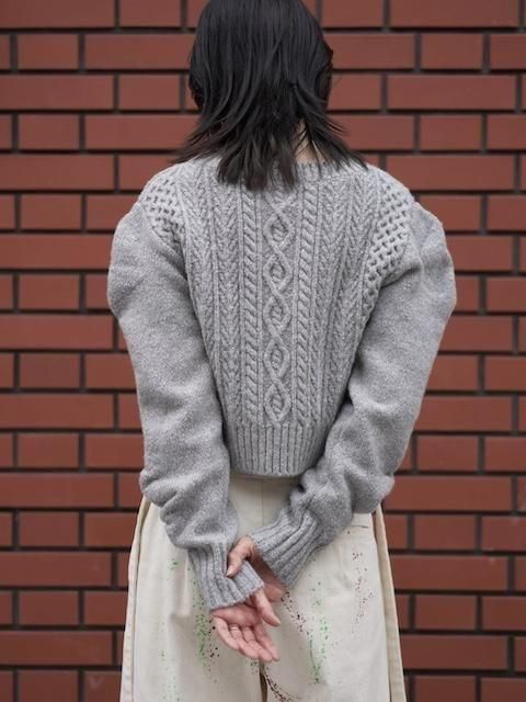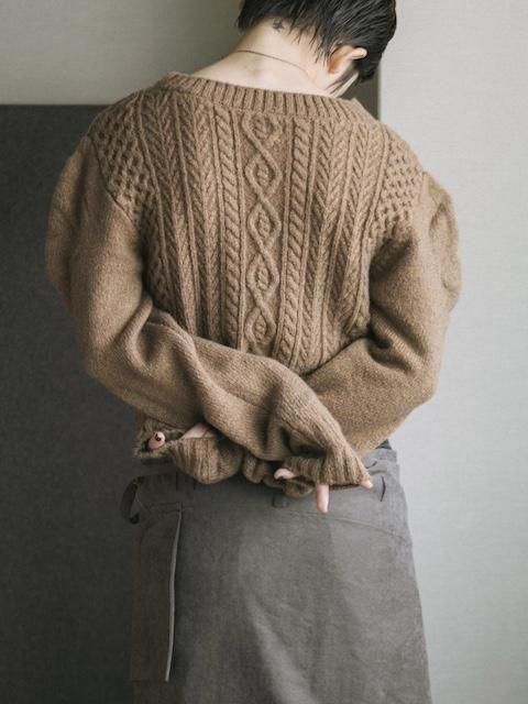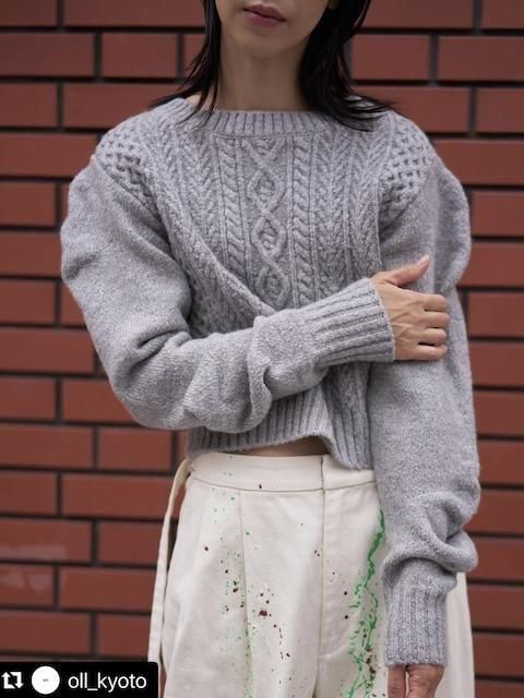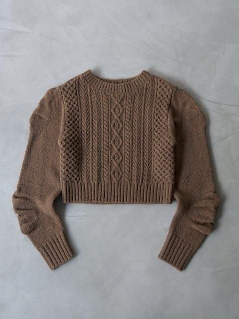 ブークレの糸を使ったコンパクトなケーブルニットです。
